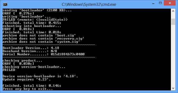 Solltet ihr beim aufspielen des Factory Images des Nexus 7 2012 (Wifi / nakasi - JWR66Y) auf folgende Fehlermelungen